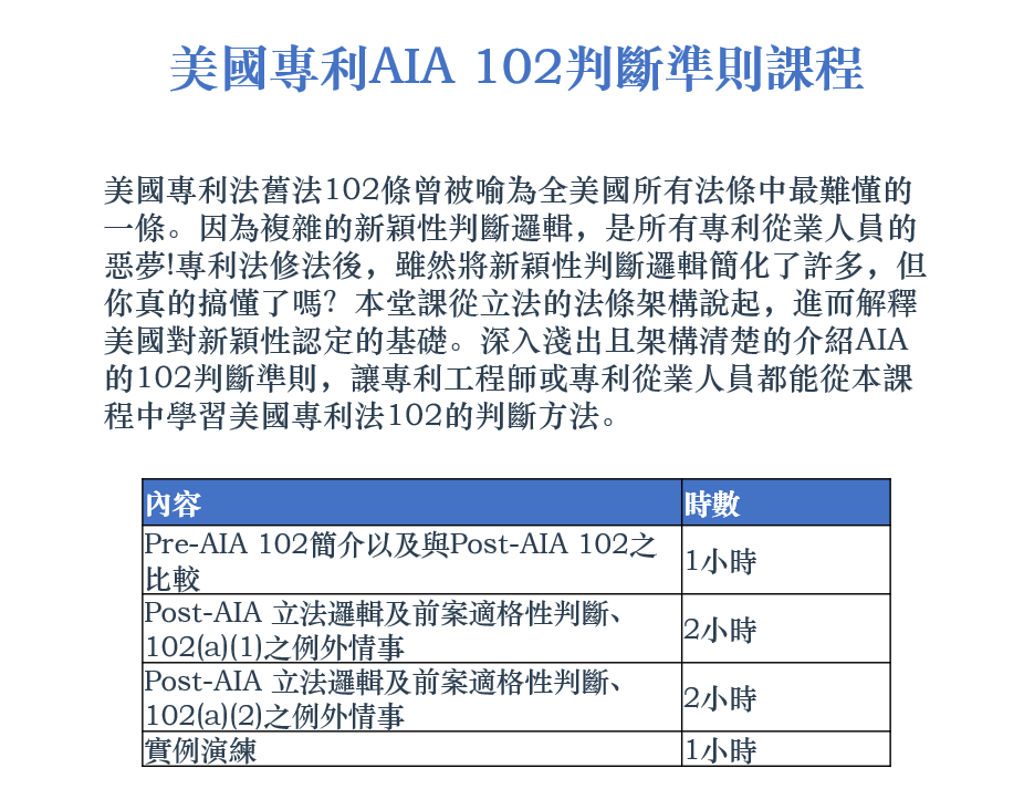 美國專利AIA 102判斷準則課程