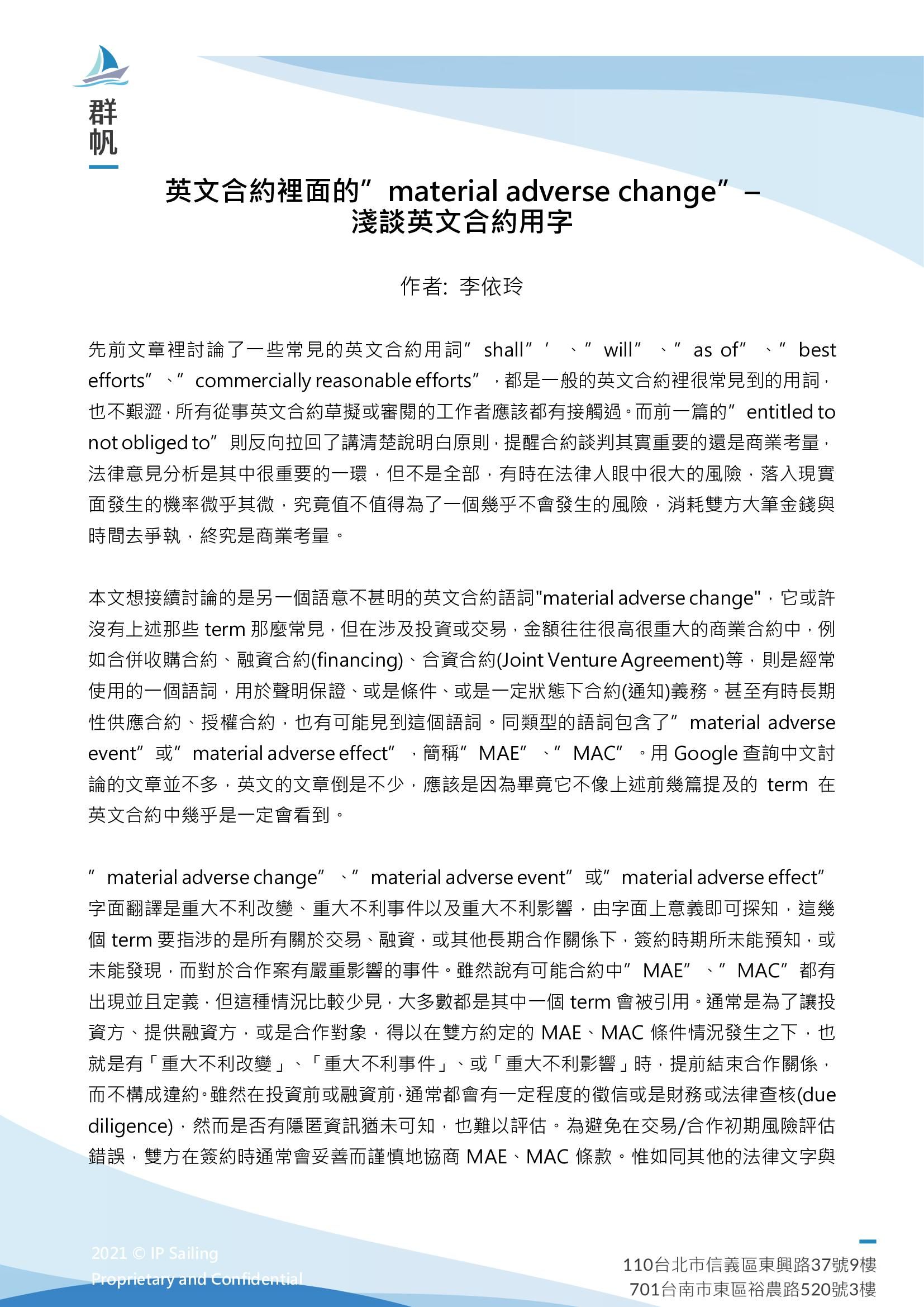 英文合約裡面的”material adverse change”–淺談英文合約用字