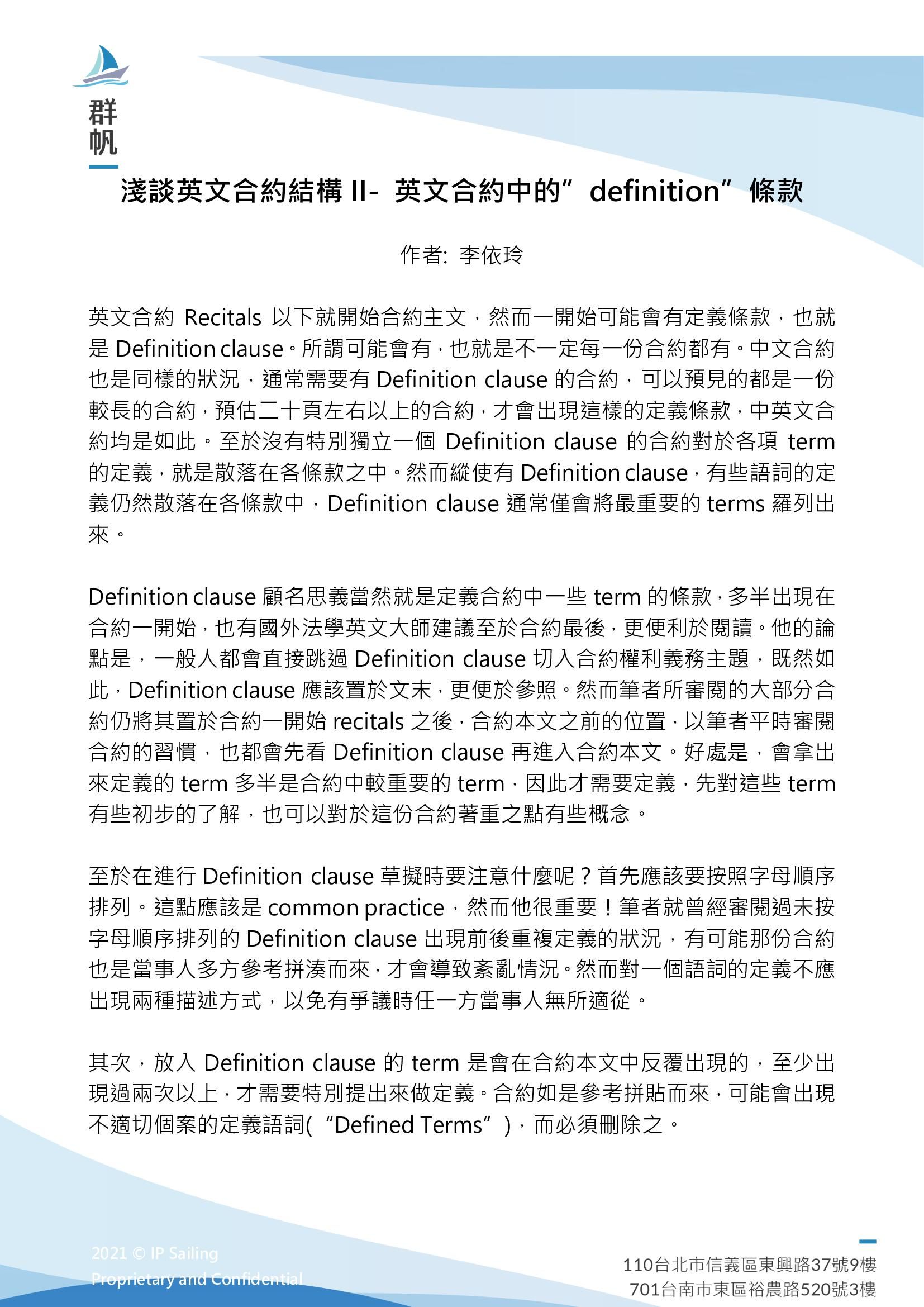 淺談英文合約結構II- 英文合約中的”definition”條款