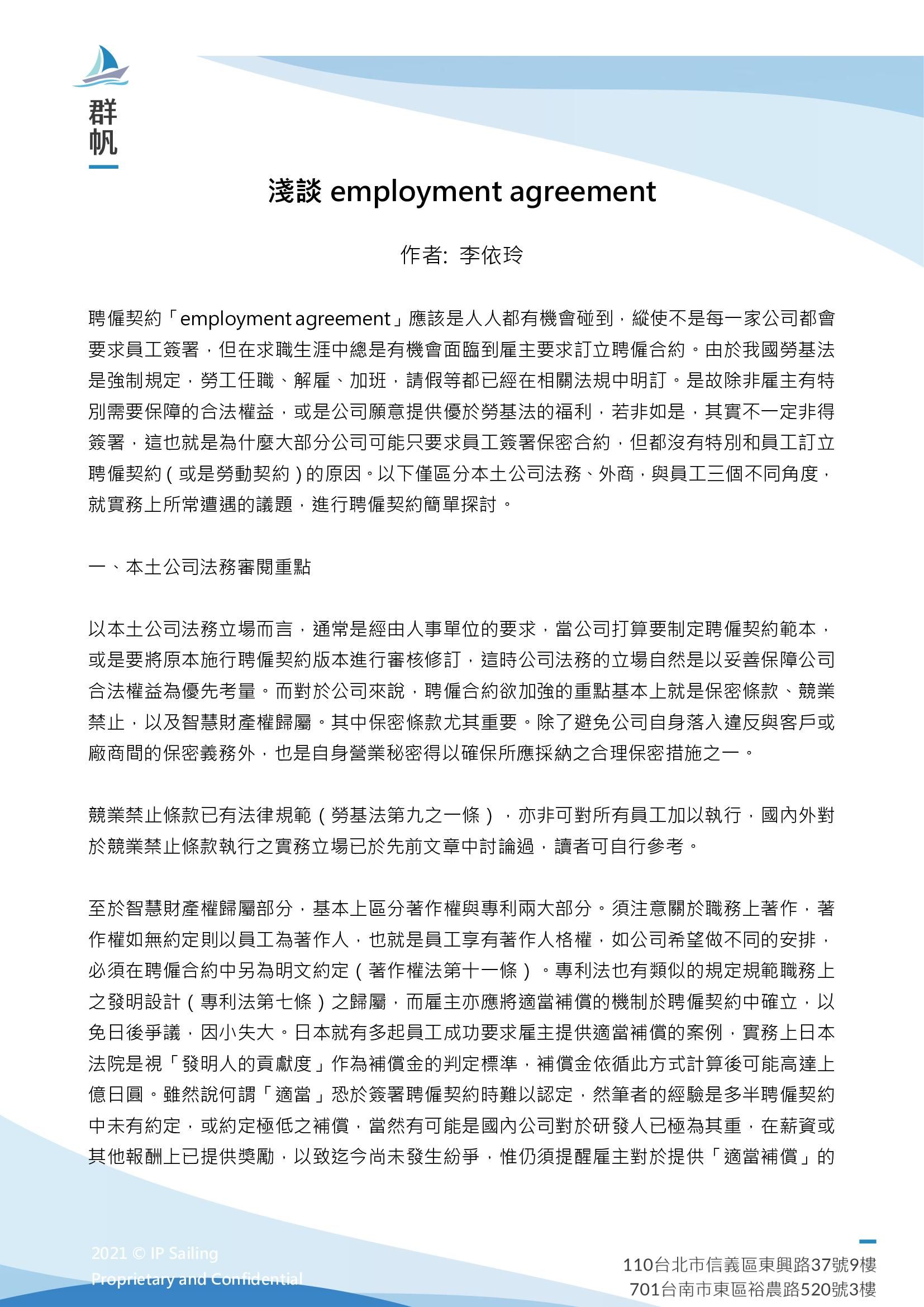 淺談employment agreement