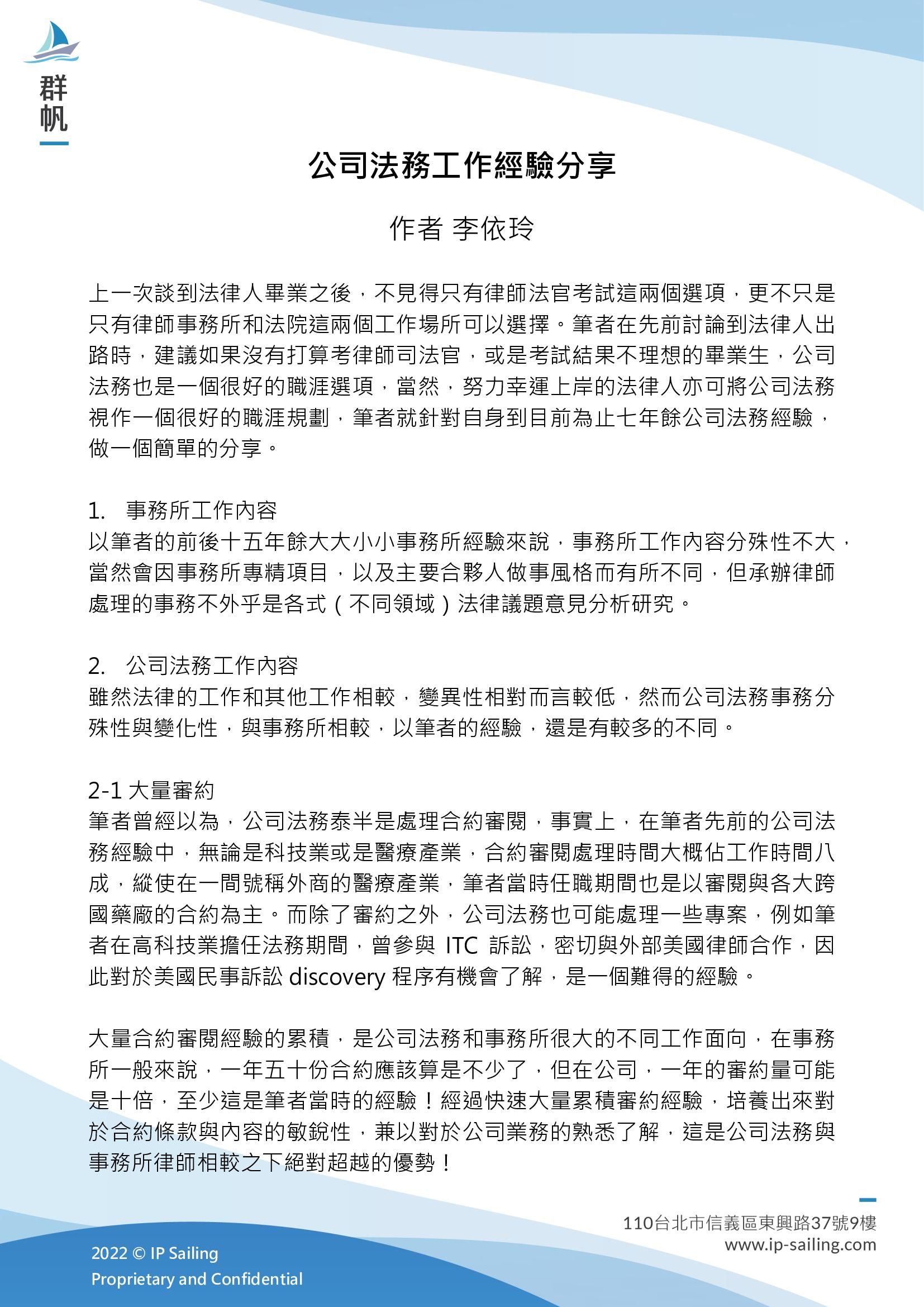 公司法務工作經驗分享