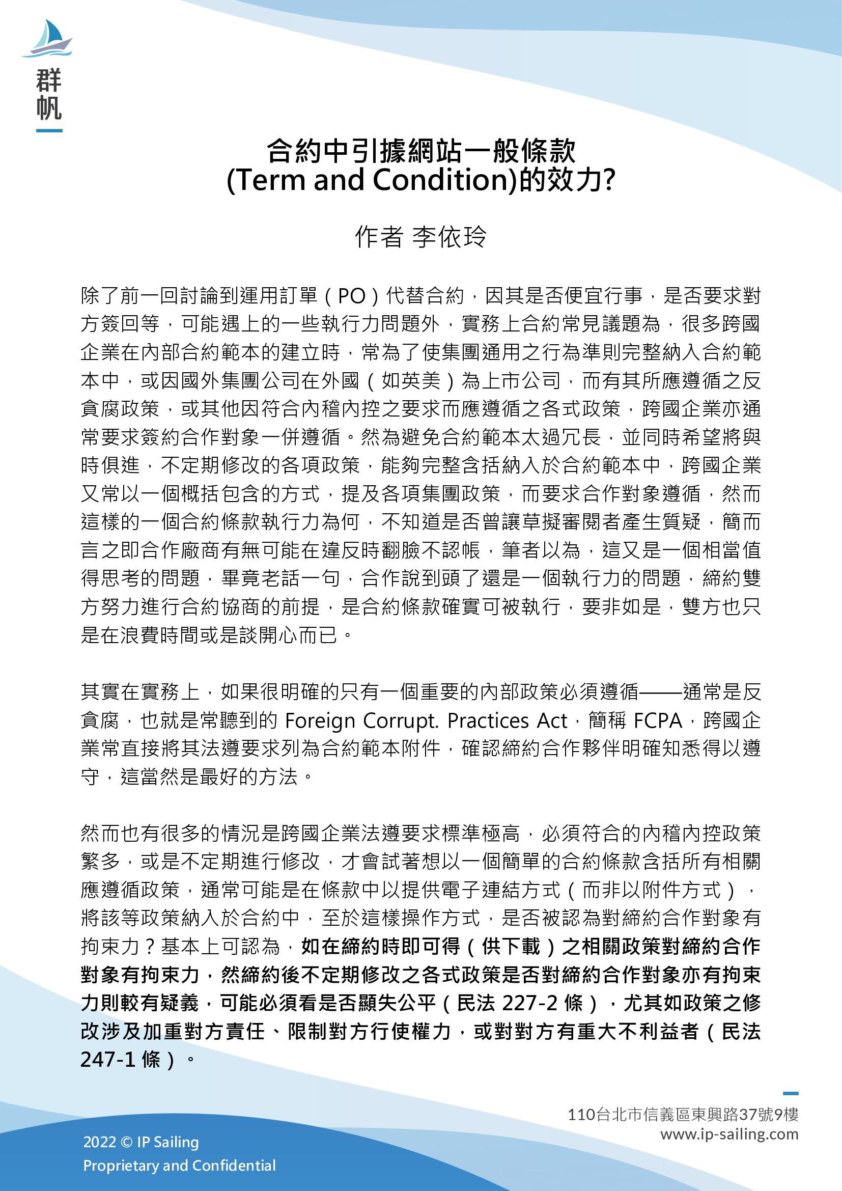 合約中引據網站一般條款 (Term and Condition)的效力?