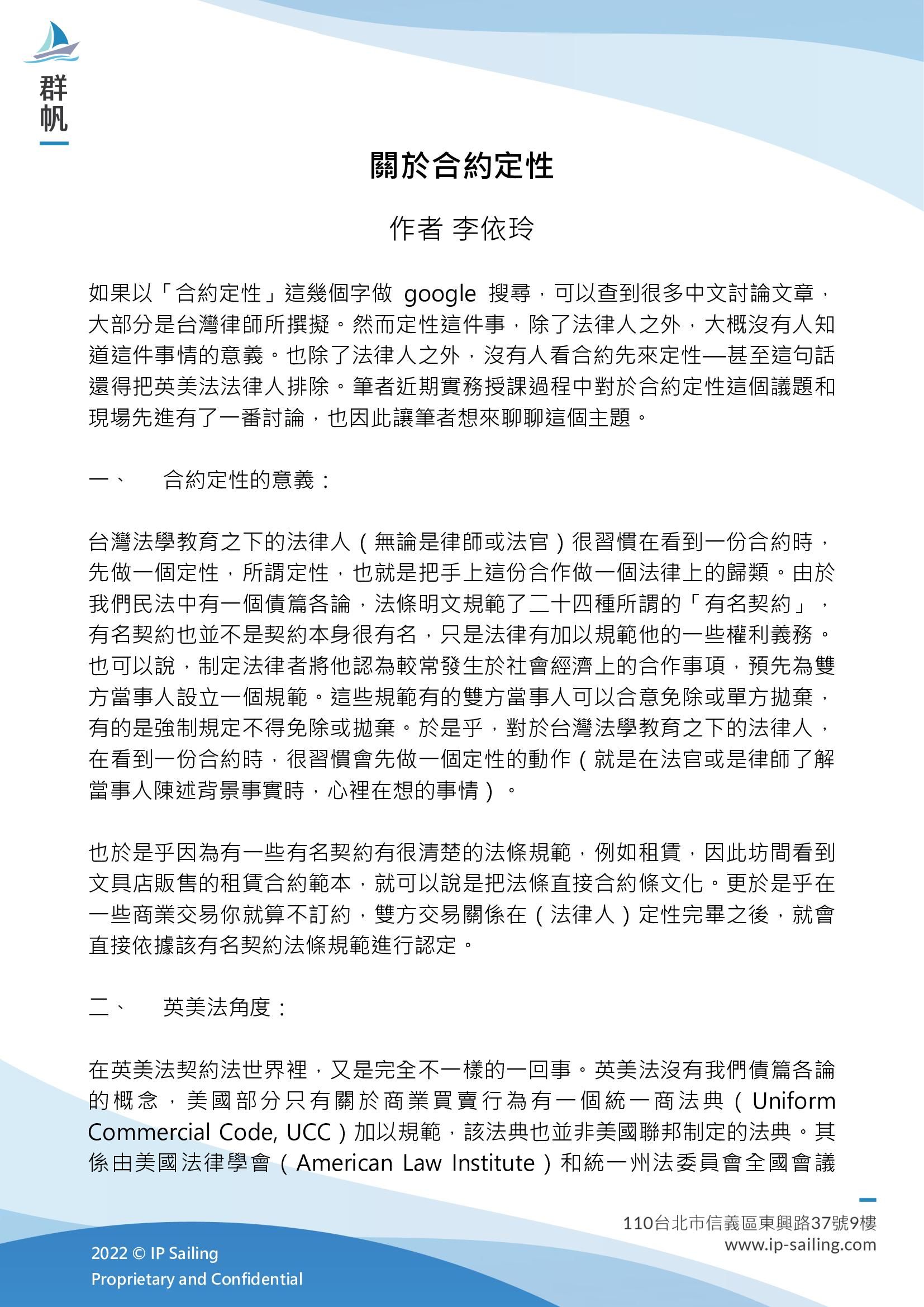 關於合約定性