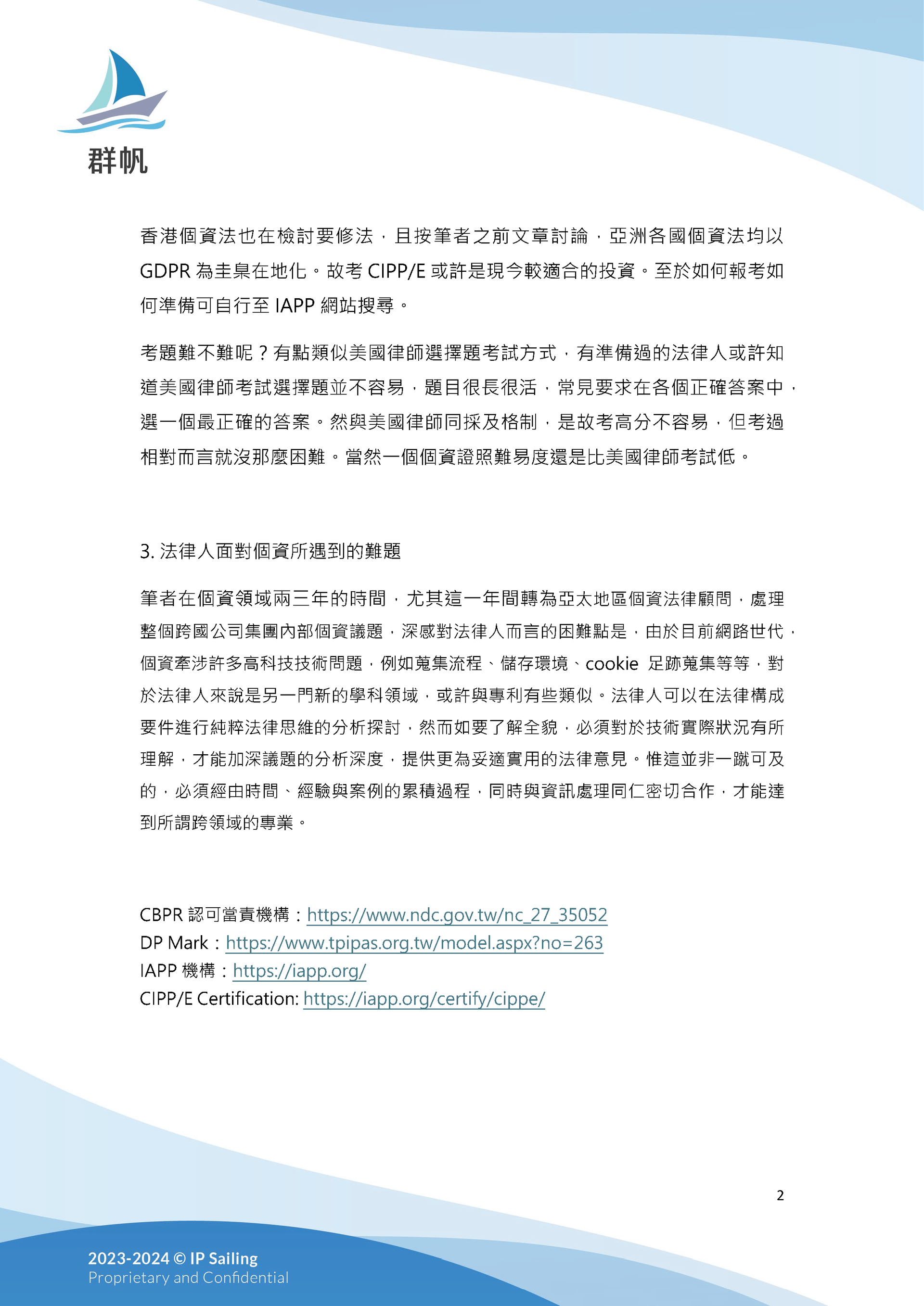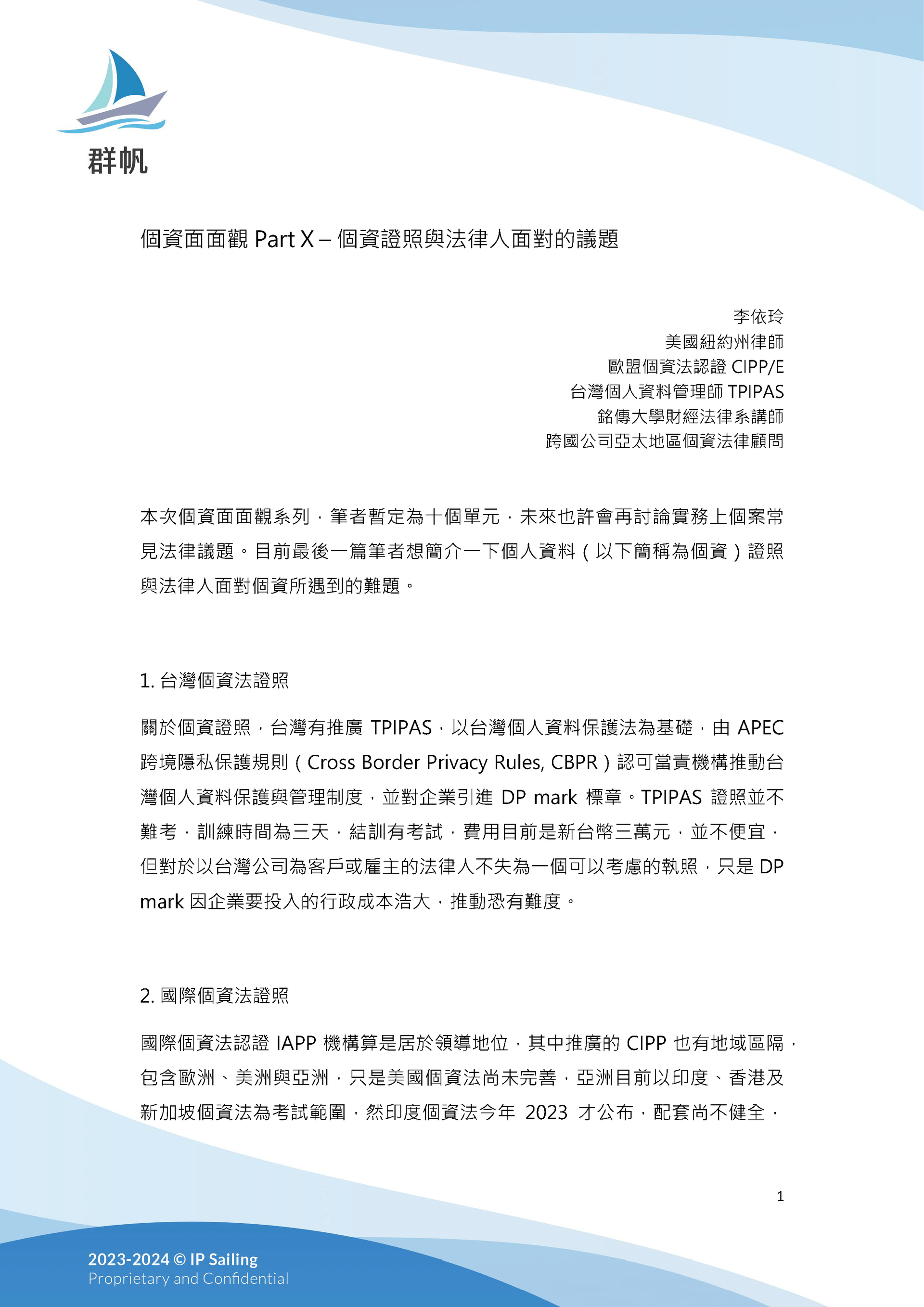 個資面面觀 Part X:個資證照與法律人面對的議題
