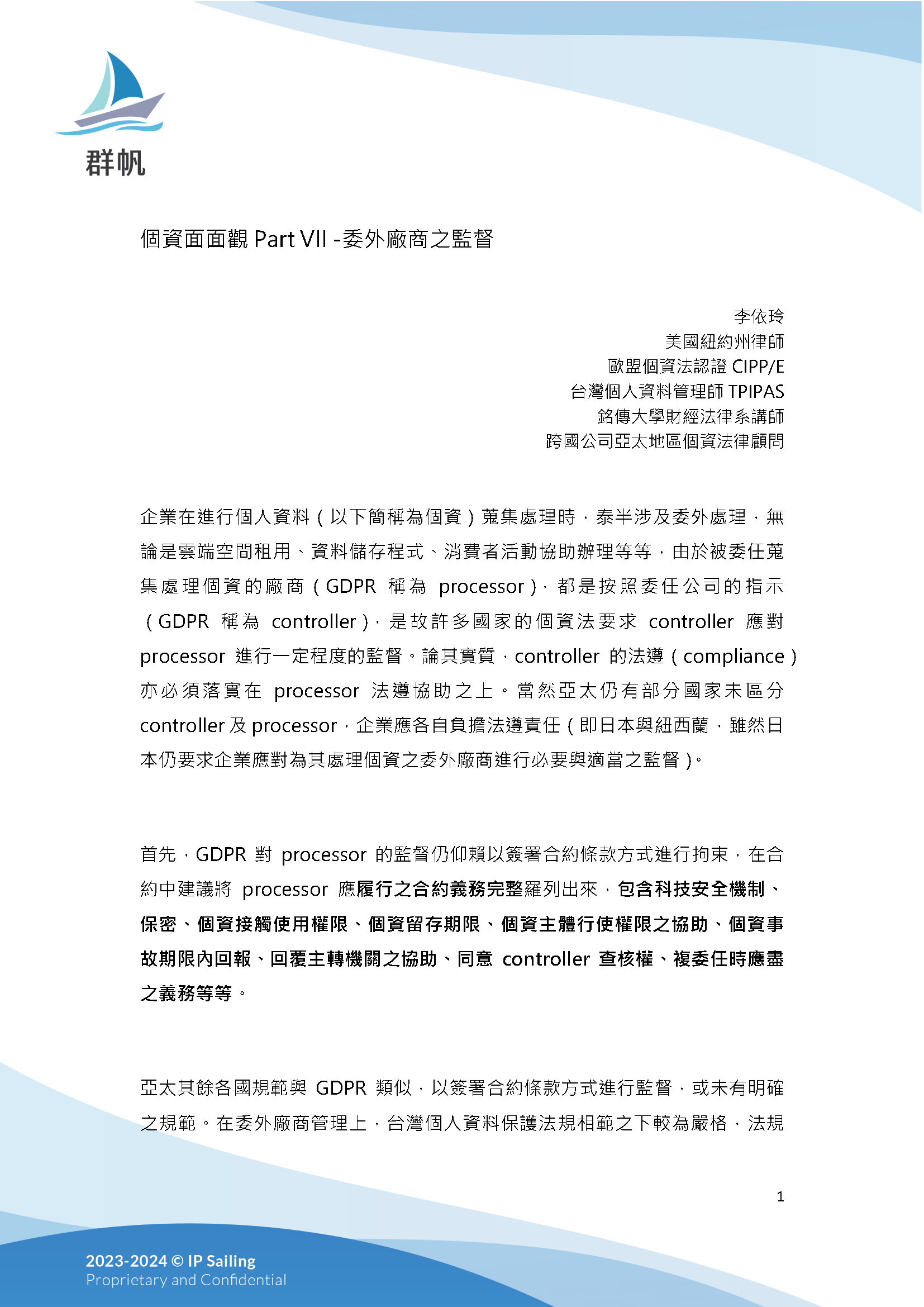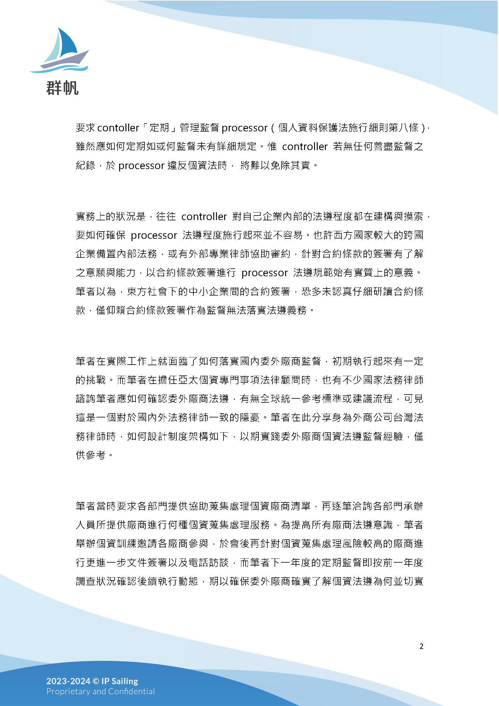 個資面面觀 Part VII:委外廠商之監督