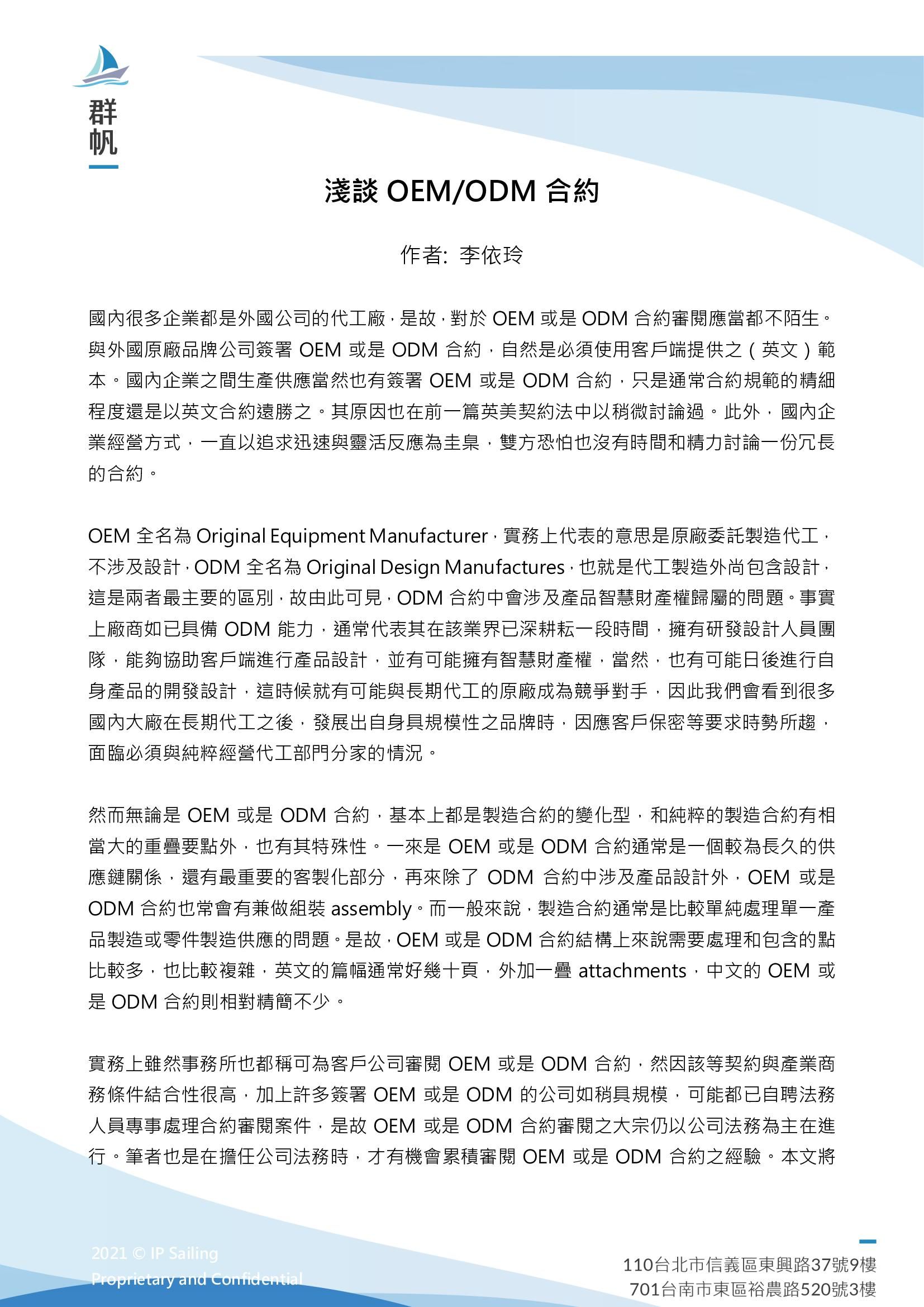 淺談OEMODM合約